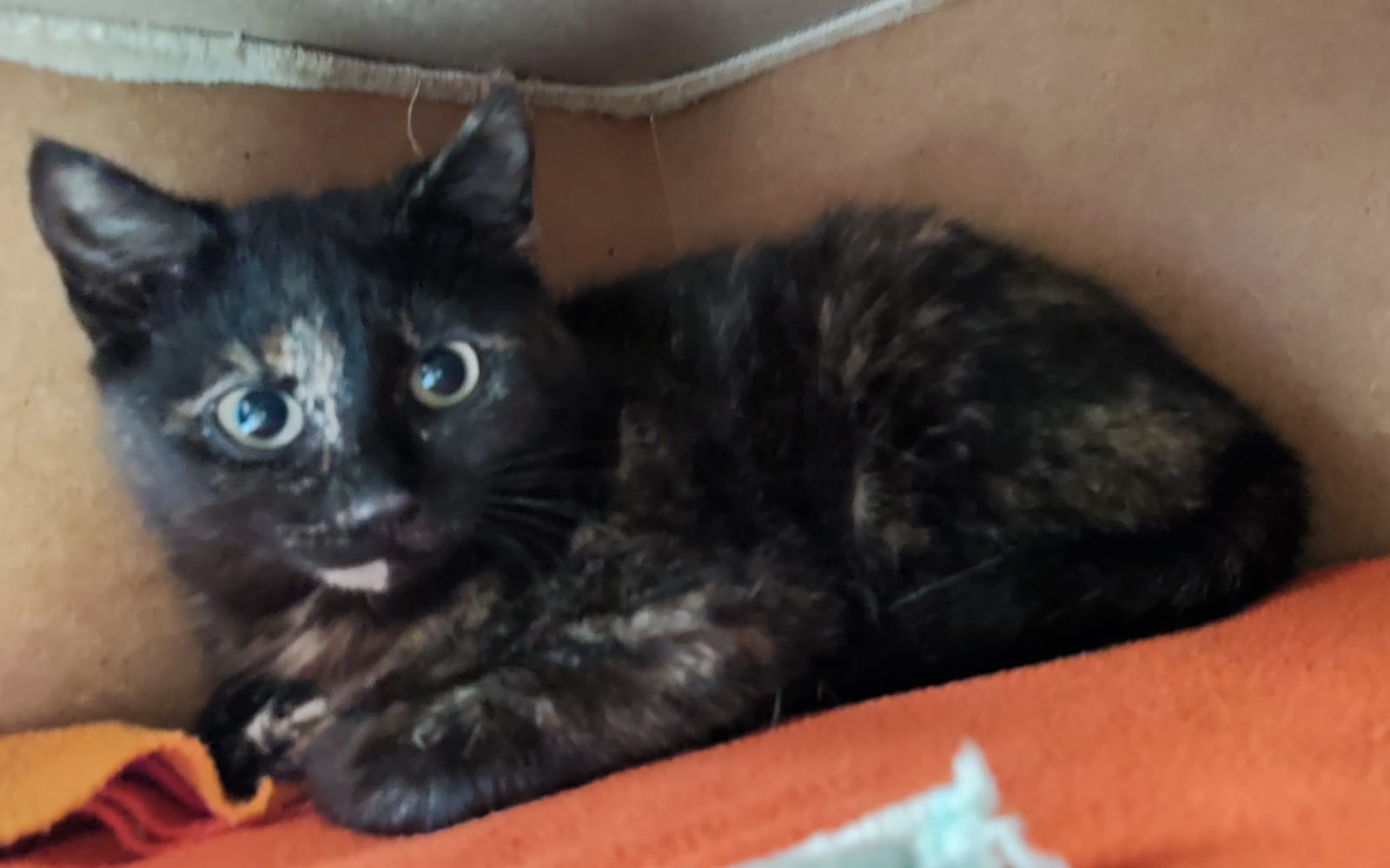 Auch hier wird ein ruhiger Haushalt bei geduldigen Menschen gesucht mit einer bereits vorhandenen Samtpfote ähnlichen Alters, an der sie sich orientieren kann.